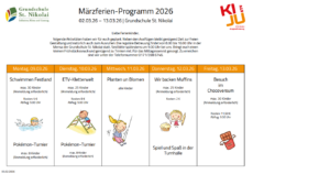 Das Kursprogramm für das 1. Halbjahr in Klassenstufe 3 und 4 im Schuljahr 2024/25 ist hier einsehbar: