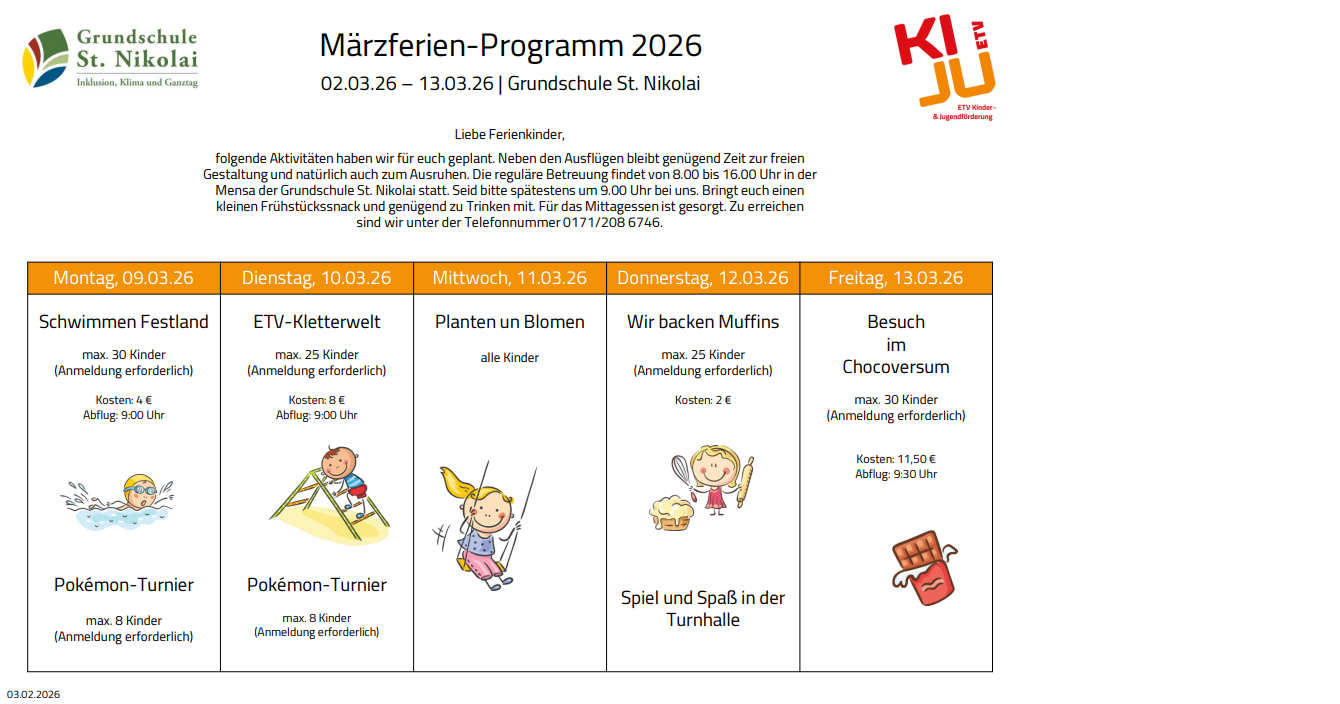 Das Herbst-Ferienprogramm 2024 ist hier einsehbar. Mit Klick auf den Link, können beide Wochen betrachtet werden.